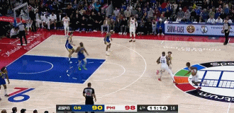 76人球员亚布塞莱本场比赛三分手感火热,尤其是在第四节勇士追上比分时他连中两记三分帮助球队稳住局面。